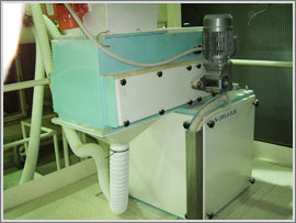- ● Pneumatske pokretne ruke sa kukama za lakše stavljanje vreće. Pričvršćivanje vreće na ispusno grlo pomoću pneumatskih klešta ili sa pneumatskim gumenim obručem, koji sprečava prašenje u okolinu.